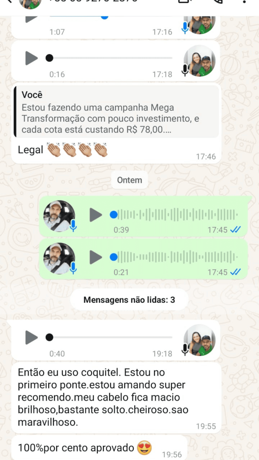 Chegou a hora de recuperar sua autoestima com cabelos visivelmente mais bonitos e tratados. Com o Coquetel Diamantador Capilar, você tem resultado de salão em casa, com praticidade, economia e um efeito duradouro que impressiona!